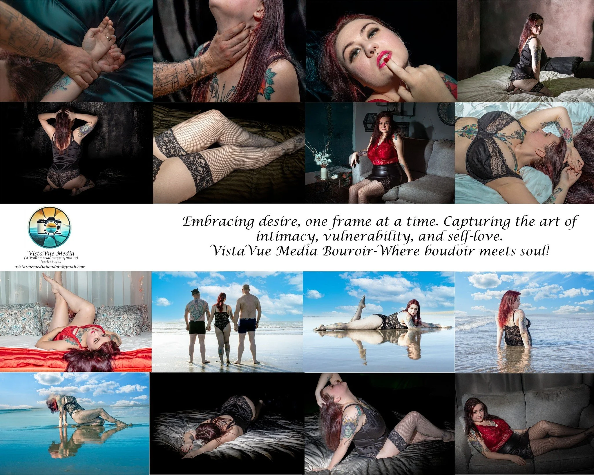 Experience the art of intimacy with VistaVue Media’s Boudoir services. Let’s create timeless, empowering visuals that celebrate your beauty and confidence!!